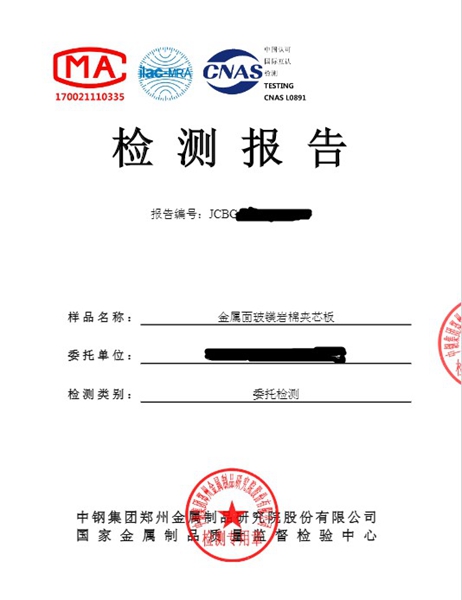 吳江玻鎂巖棉夾芯板耐火極限檢測報告: